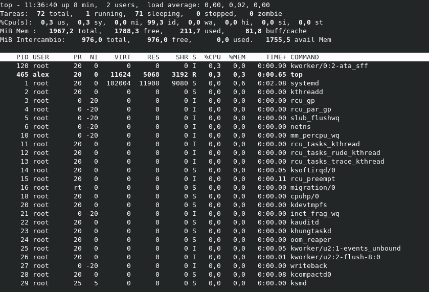 Como curiosidad, con el servidor recién instalado se puede comprobar que el consumo de memoria es realmente bajo: unos 200Mb de RAM. Eso cambiará conforme vayamos ejecutando servicios.