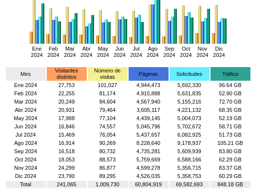 Con respecto a 2023, existen datos contradictorios: una reducción del número de visitantes únicos pero un aumento sustancial de número de páginas visitadas.